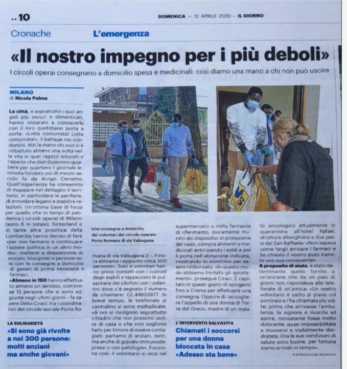 Nel riaffermare il tradizionale rapporto di fiducia e sostegno esistente da tempo tra i Circoli Operai e gli abitanti del quartiere, e facendo seguito alle numerose richieste già pervenuteci, i volontari del Circolo, di fronte alla difficile situazione venutasi a creare, ritengono doveroso assicurare la loro concreta solidarietà, mettendosi a disposizione di chiunque si trovi nella necessità di avere un appoggio o un aiuto per provvedere a tutte le esigenze della quotidianità (spesa, medicinali, giornali, o supporto e assistenza di vario genere).