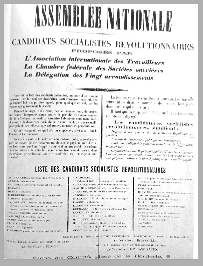 Pochi giorni prima, il 22-23 febbraio 1871, il Comitato dei 20 arrondissements stilò una Dichiarazione di princìpi: