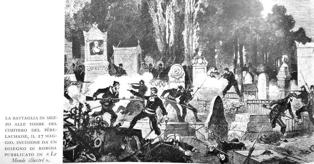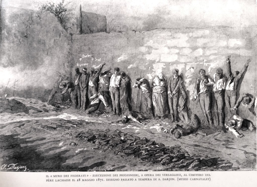Abbiamo scelto di commemorare i 150 anni della Comune di Parigi non nel giorno della gloriosa insurrezione del 18 marzo ma in quello della sua tragica fine: il 28 maggio, al termine di quella che è passata alla storia come la “settimana di sangue”. Per ricordare alla classe operaia il prezzo che la classe dominante è disposta a farle pagare in caso di sconfitta nel tentativo di sovvertire il modo di produzione capitalistico.