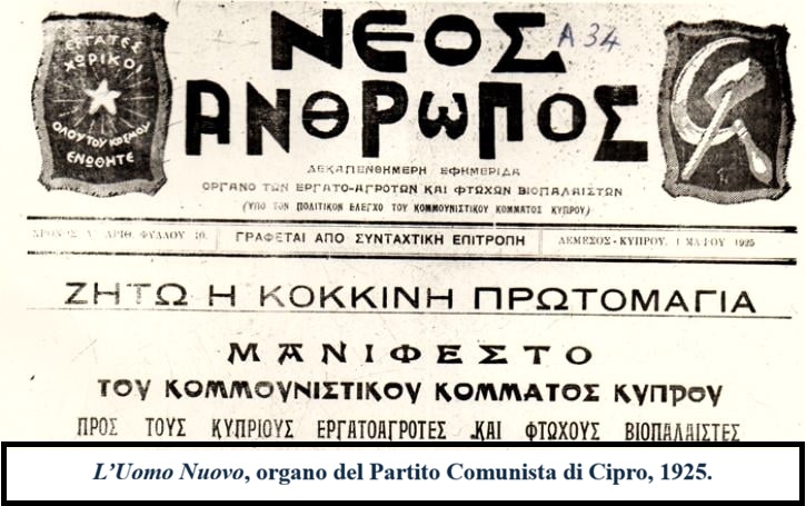 Il Primo maggio, lo stesso giorno in cui il proletariato di tutto il mondo, sotto la bandiera rossa, ha proclamato ancora una volta le sue giuste rivendicazioni ed ha protestato contro la disonestà e la bassezza dei vari governi fascisti e contro le infinite macchinazioni degli imperialisti, qui a Cipro, in un angolo del Mediterraneo, l’imperialismo inglese, con una “Lettera Patente”, ha dichiarato Cipro colonia, aggiungendo così altri trecentomila operai e contadini ai milioni di popoli colonizzati che sono incatenati dietro il suo carro insanguinato.